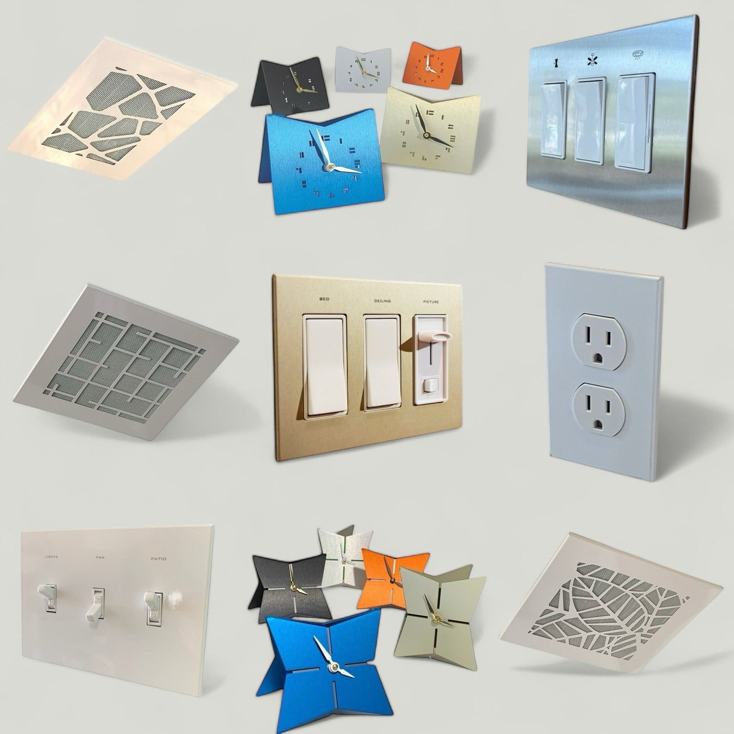 SWITCH PLATE COVERS, AIR VENT COVERS & CLOCKS