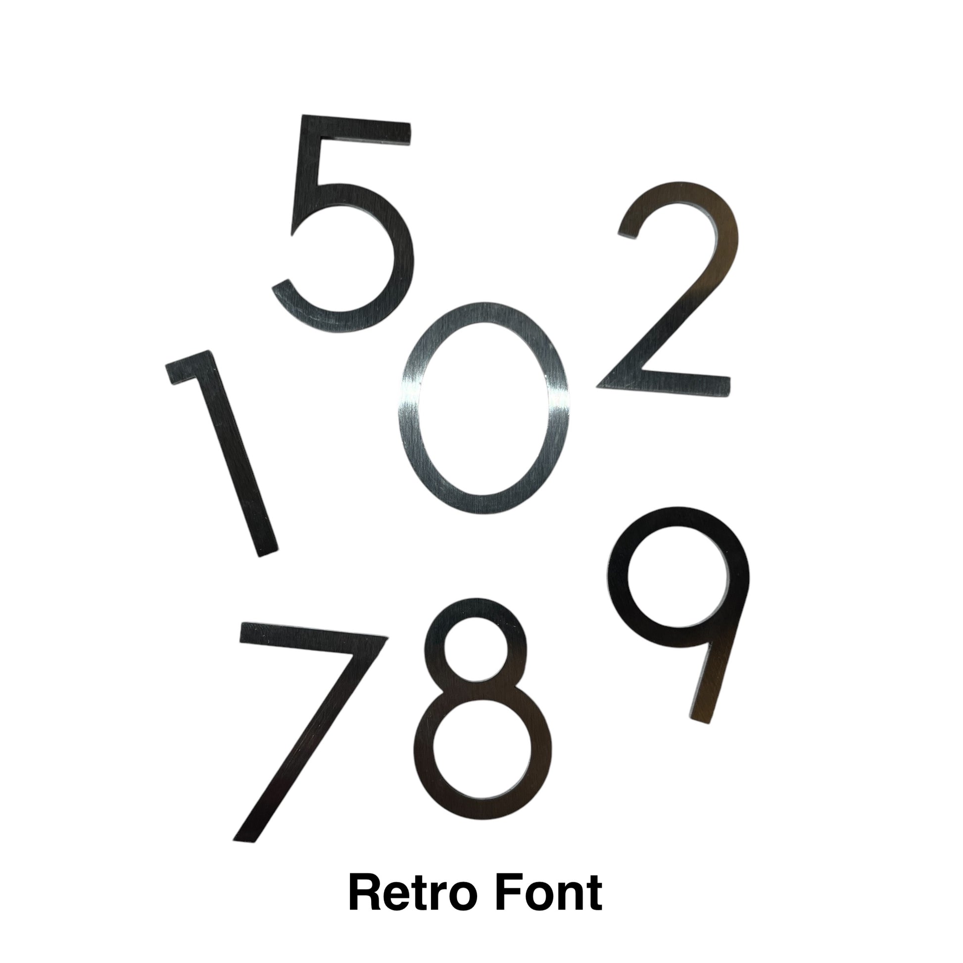 The optional Stainless Steel Numbers come in pairs (one for each side), and are attached with peel and stick tape. $8.95 each pair.